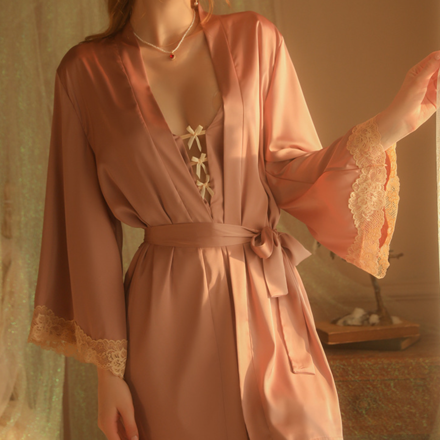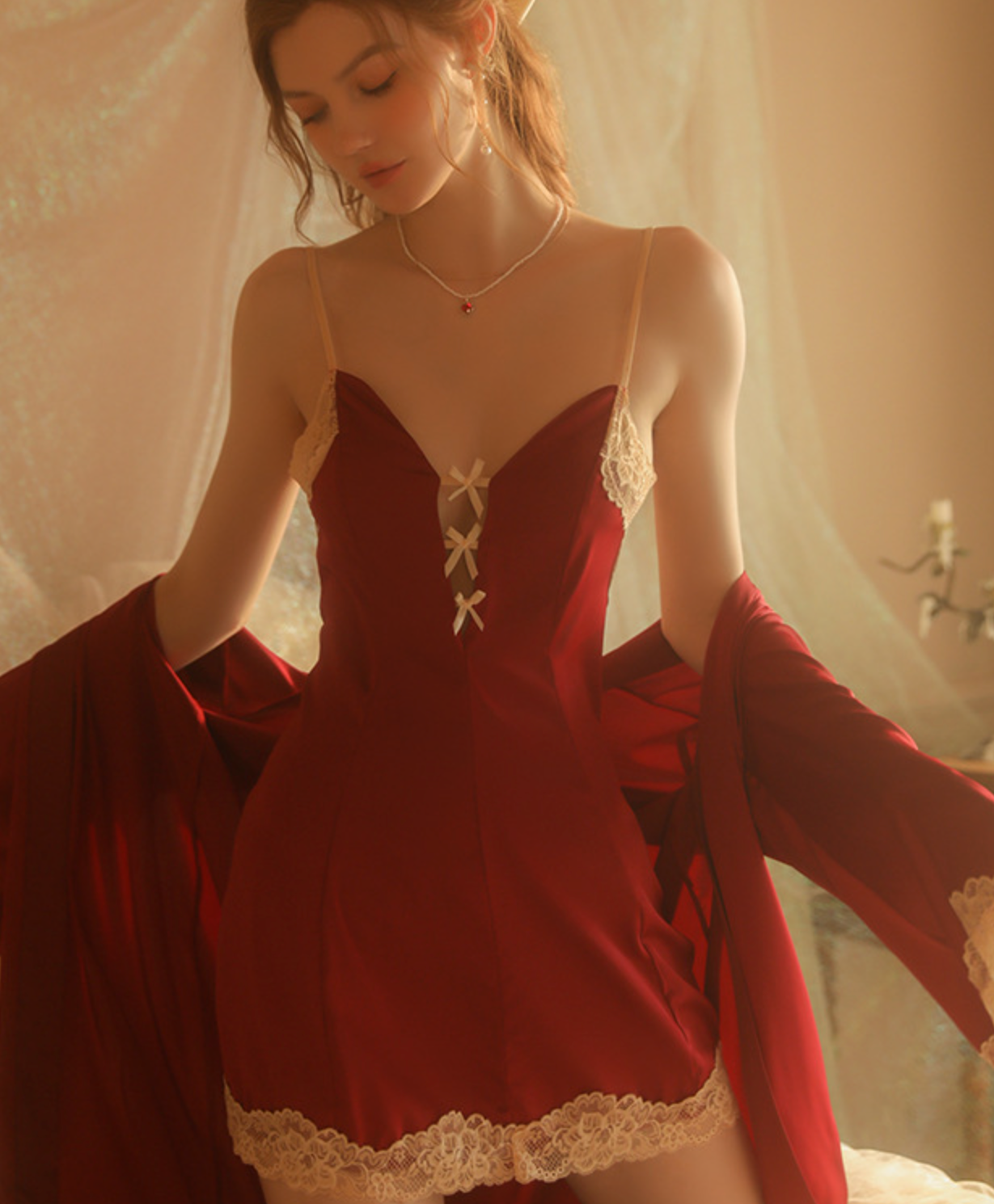 含有睡袍的睡裙也是相當不錯的選擇!絲質順滑,S形版型能讓身材看起來更加的苗條~而低胸設計能讓女孩們的圓潤胸部加倍突出~讓男生視覺集中喔!