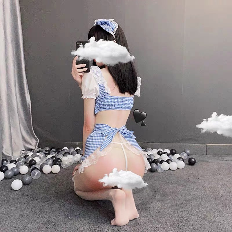 包含物:藍色女傭髮夾、上衣、裙子、內褲、絲襪