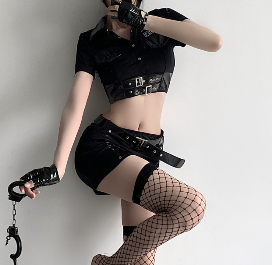 包含物:黑女警套組+帽子、皮帶、手套、手銬、網襪