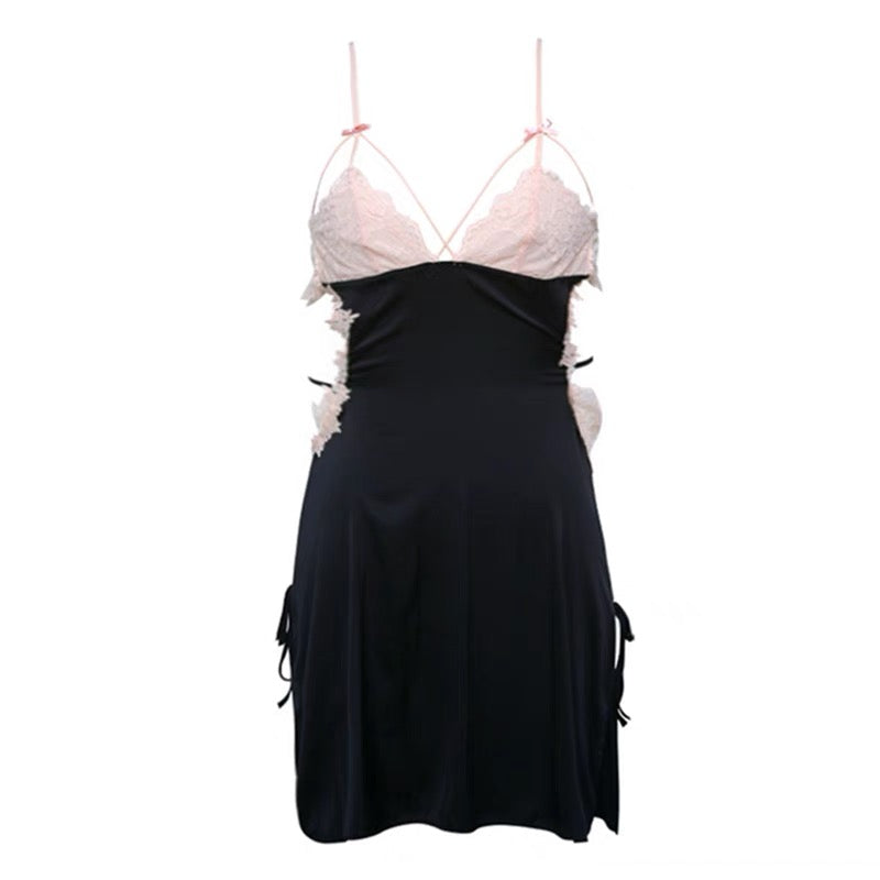 呢個設計嘅睡裙非常之有誘惑人嘅感覺相信好多女士都會鍾意粉紅色😍性感得嚟又帶起有點活潑嘅感覺🤭心口同腰部做咗蕾絲料.系感官上再加上一啲高貴既感覺😋腰部做咗個鏤空設計.可以顯露出你迷人嘅小蠻腰🫶🏻兩邊大腿位都做左個開叉位😎更加顯你既雪白修長的腿😇質料方面非常之好.摸落去非常之絲滑👍🏻
