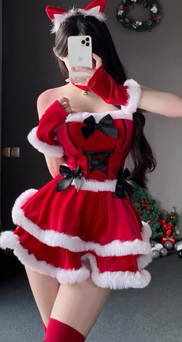 -聖誕貓女郎黑白交叉設計,超顯腰身和腿長,用色方面唔會過悶,經典得嚟又增添新元素性感中又不失少女感;毛茸茸分層裝飾、貓貓頭飾🐱化身成你或者男朋友最中意既貓貓,配上專屬既啷啷頸圈🙈為寧靜嘅夜晚增添一啲美妙嘅聲音。聖誕派對中的熱門選擇❤️🔥