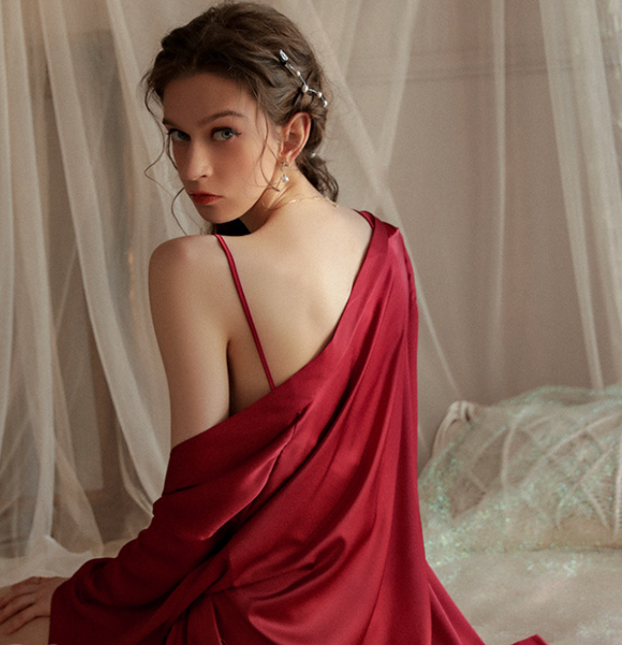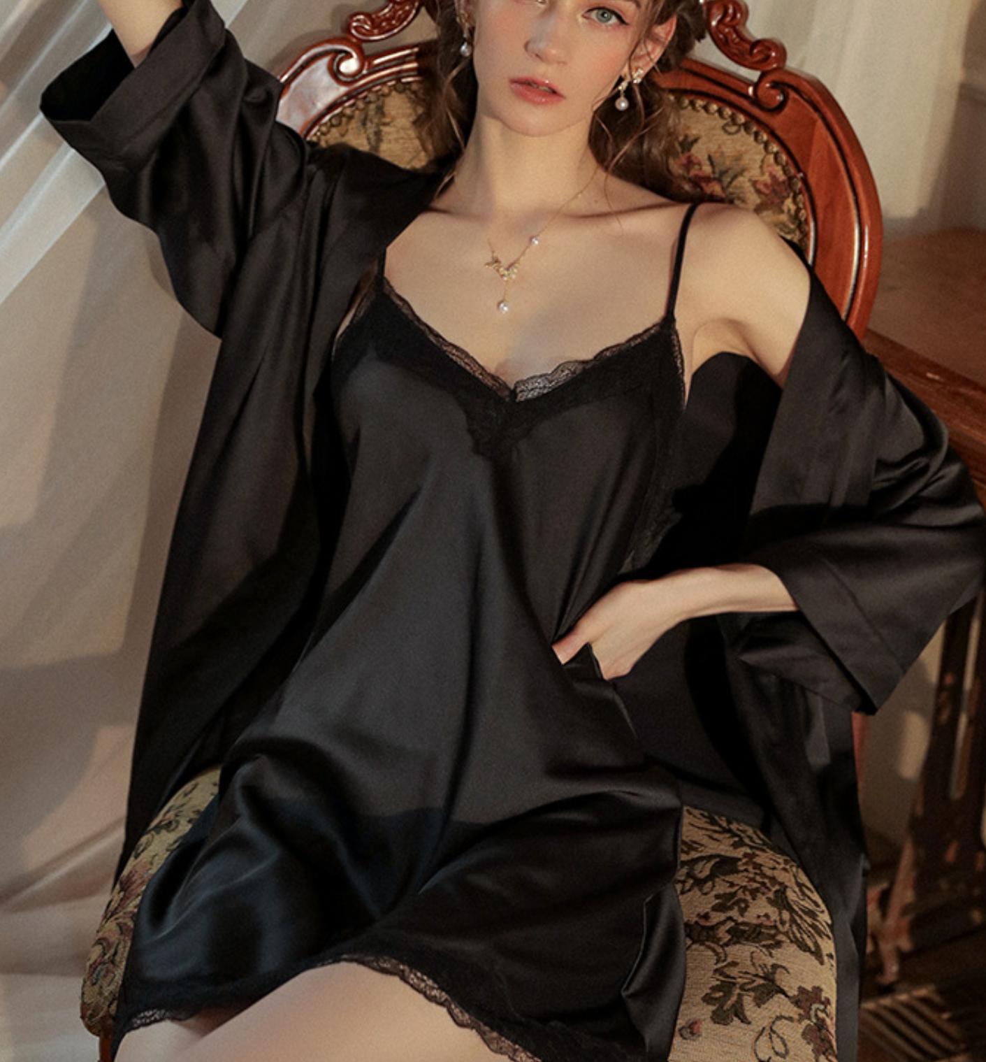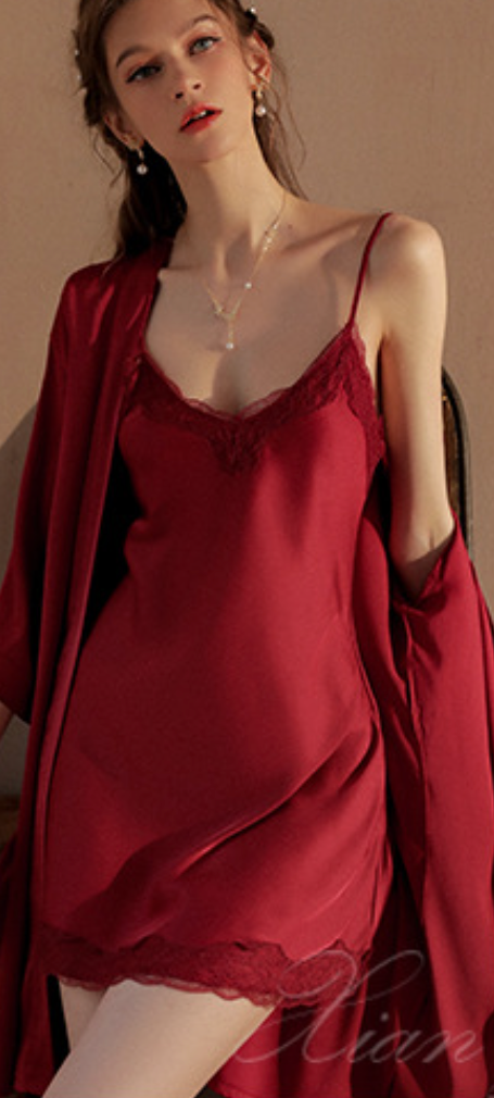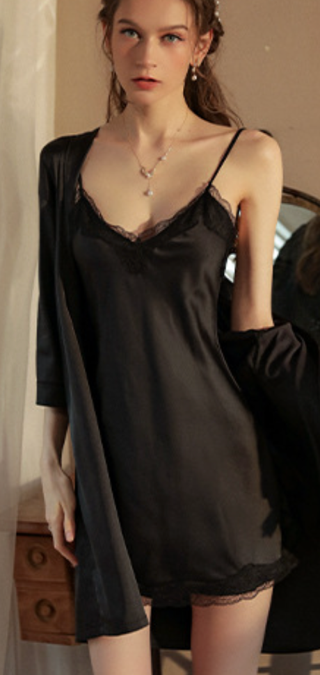 法式絲滑睡裙套裝