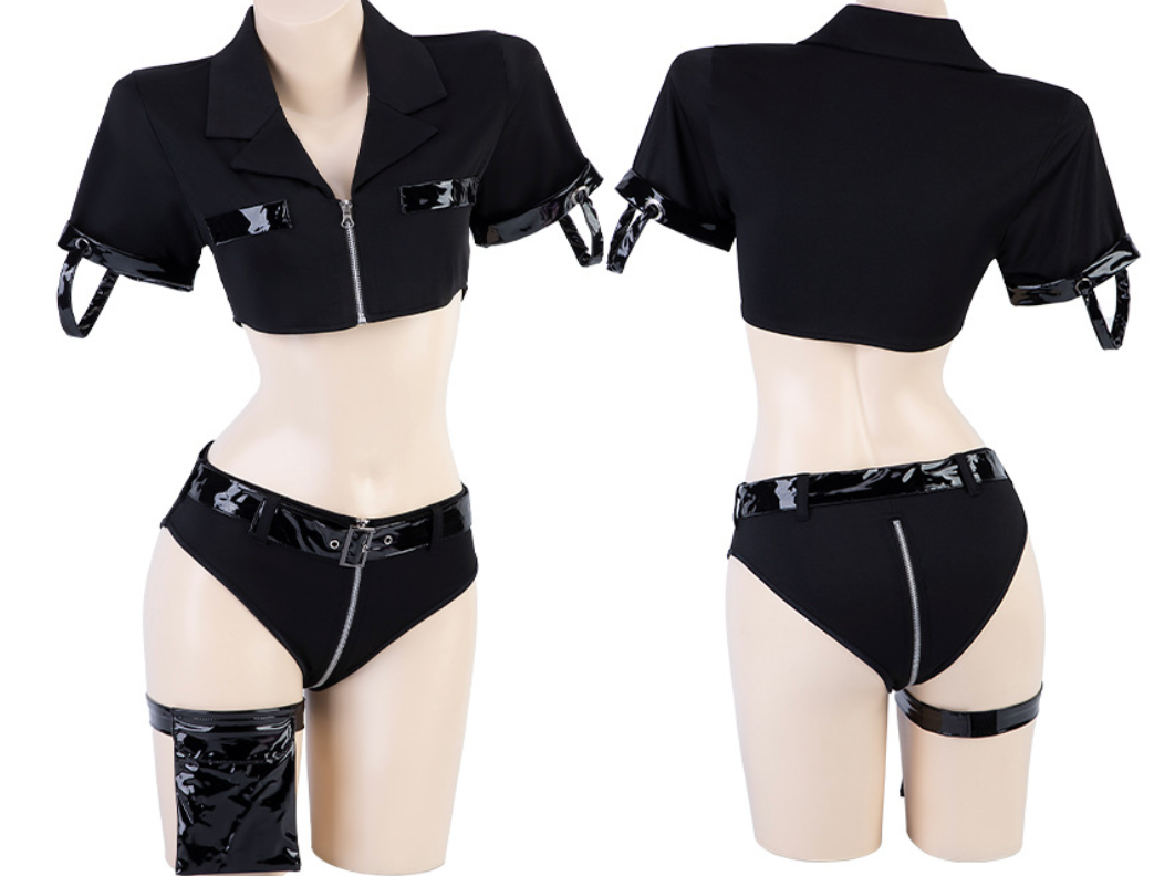 One size fit all,一個尺寸適合任何人。包含物:上衣、裙子、腿環、腰帶
